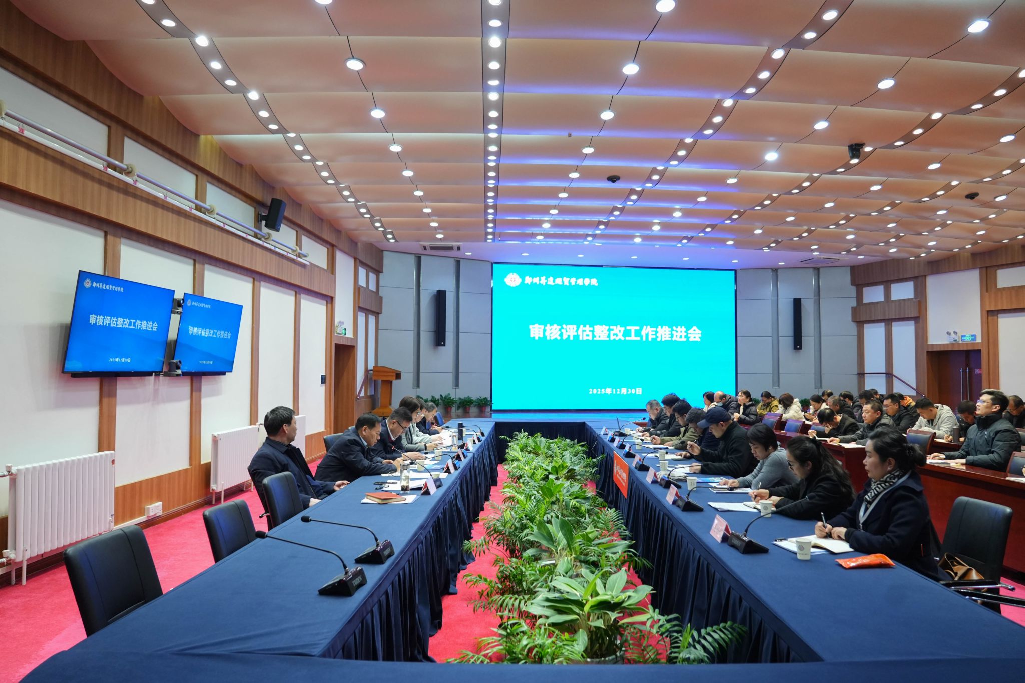 12月30日下午,学校在行政楼国际会议厅召开本科教育教学审核评估整改工作推进会,全面总结整改启动以来的阶段性工作,研究部署下一阶段重点任务。董事长王新奇、校长张欣、党委副书记、副校长张金安、副校长张其武、登封校区党工委书记沈定军等学校领导以及各职能部门、各教学单位主要负责人,校整改办全体成员出席会议。会议由教学质量监测与评估中心主任罗秉鑫主持。